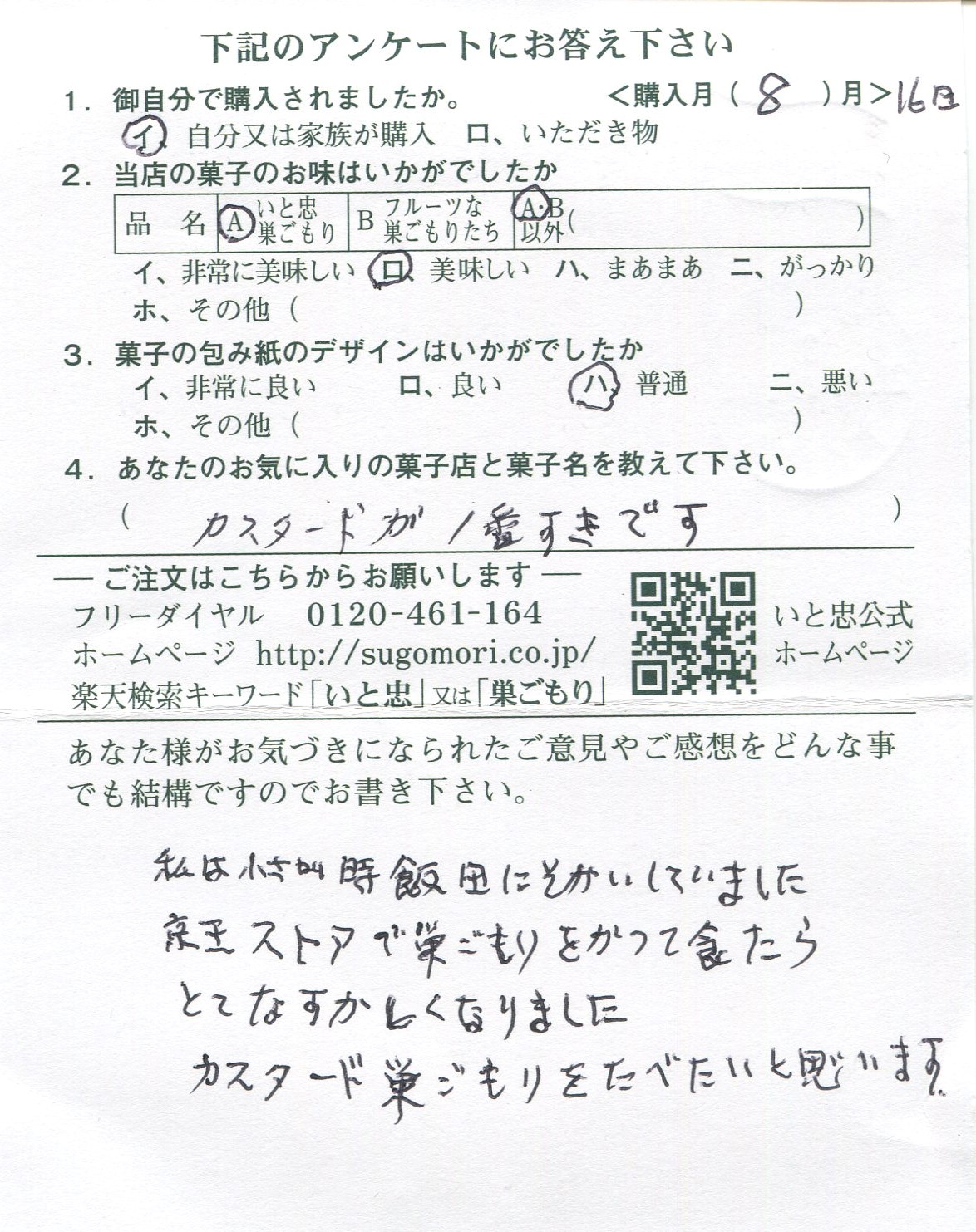 まわりが薄くてカリッとして、中は上品でやわらかくまろやか。おいしくいただきました。栗あん巣ごもり等、他のお品も食べてみたくなりました。 ...
