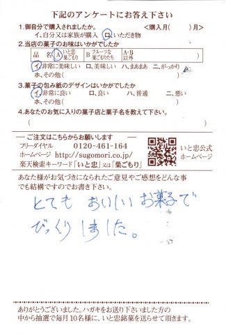 息子が今年から飯田市で仕事をする事になって、はじめて巣ごもりを頂きました。1ヵ月限定の巣ごもりというのも、選ぶ楽しみがあっていいですね。私...
