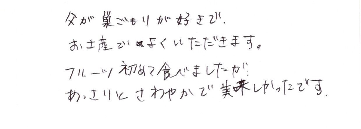 パイナップル・青梅の味、両方とも夏にぴったりな、フレッシュな風味とホワイトチョコレートがやさしい味でとてもおいしかったです。家族みんなおい...