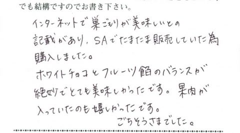息子が八ヶ岳によく登ります。お土産に「いと忠巣ごもり」を初めて買って来ました。今迄買って来てくれたお土産で、これ程美味しいものはありません...