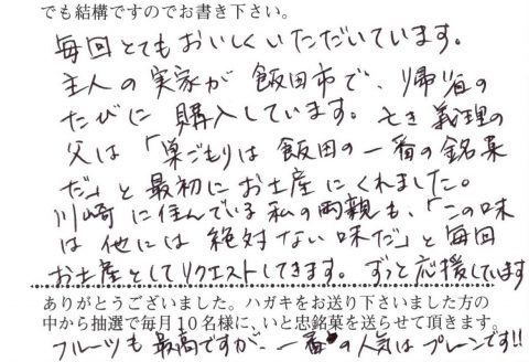 主人の実家が飯田市で、帰省のたびに購入しています。