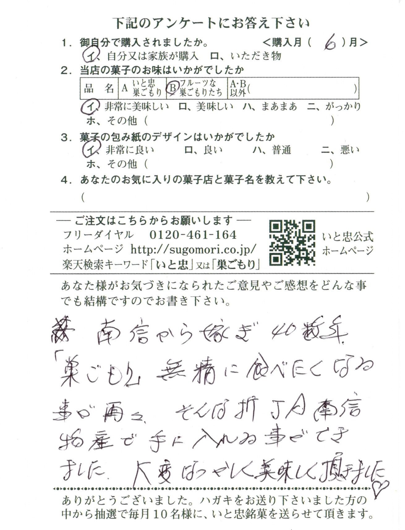飯田に行った時は購入させていただいてます。お茶のホッとする時間に、いっしよに食べさせていただいてますが、とてもいい時間のおやつタイムになっ...