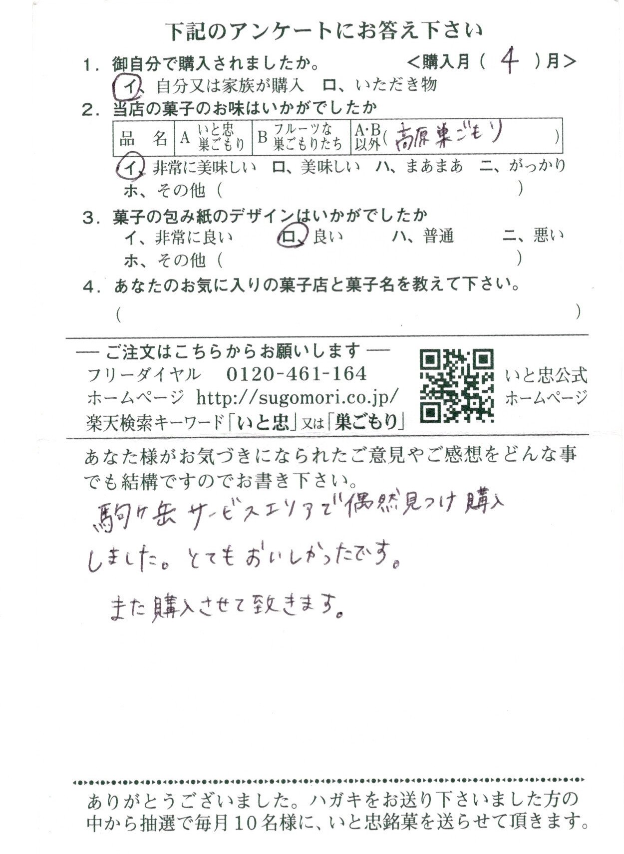 駒ケ岳サービスエリアで偶然見つけ、購入しました。