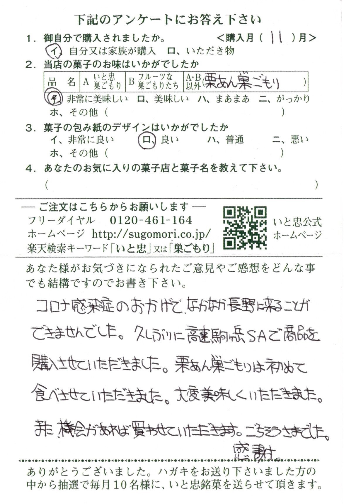 初めて購入。栗あんがなめらかで甘すぎず、とても品の良い味だったと思います。おいしいお茶と一緒に頂いて、とても幸せな気分になりました。ありが...