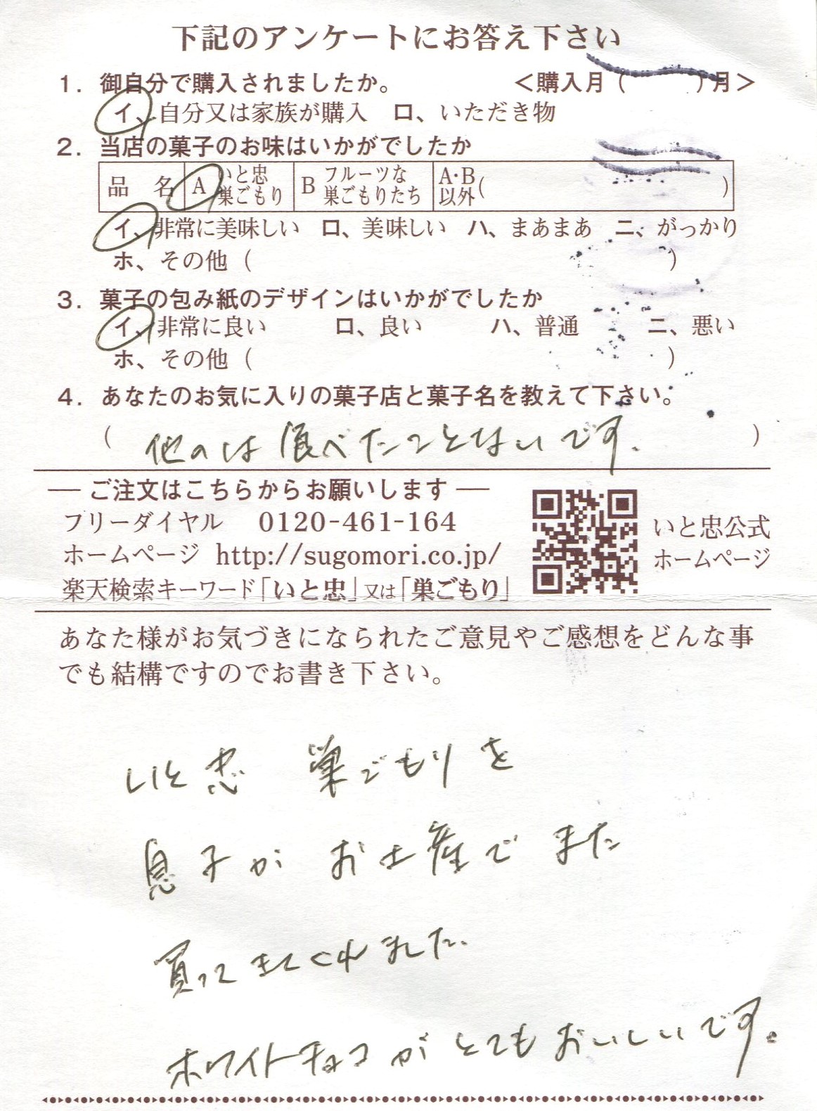 いつも高速道路のサービスエリアのお店を利用しています。巣ごもりがお気に入りです。巣ごもりを友人にすすめられ気に入り、それ以来、長野に寄る際...