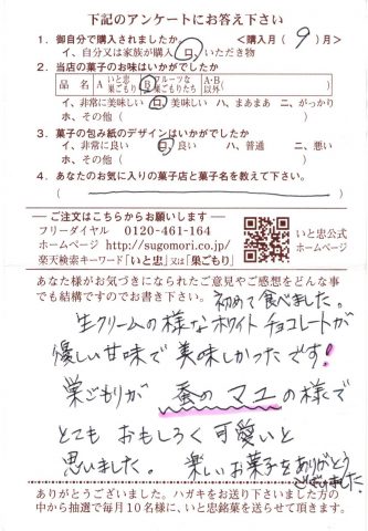 とても美味しくいただきました。時々恵那から買いに行かせてもらっています。大変な世の中ですが、皆様お体に気を付けてこれからも美味しいお菓子を...