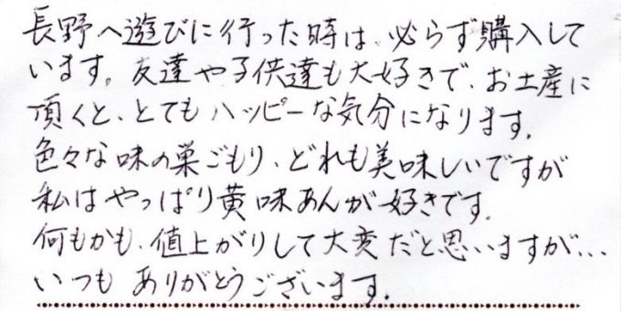 長野にお越しの際には、必ずお買い求めいただき、ご家族やご友人にも喜んでいただけてい