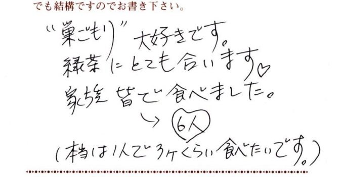 “巣ごもり”大好きです。緑茶にとても合います♡