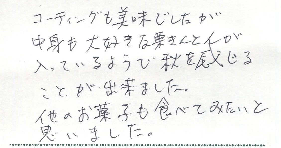 私は岐阜出身ですが、長野県にこんなに美味しいお菓子があるとはじめて知りました。子どもたちもとても好きになったようです。また長野に訪れた際は...