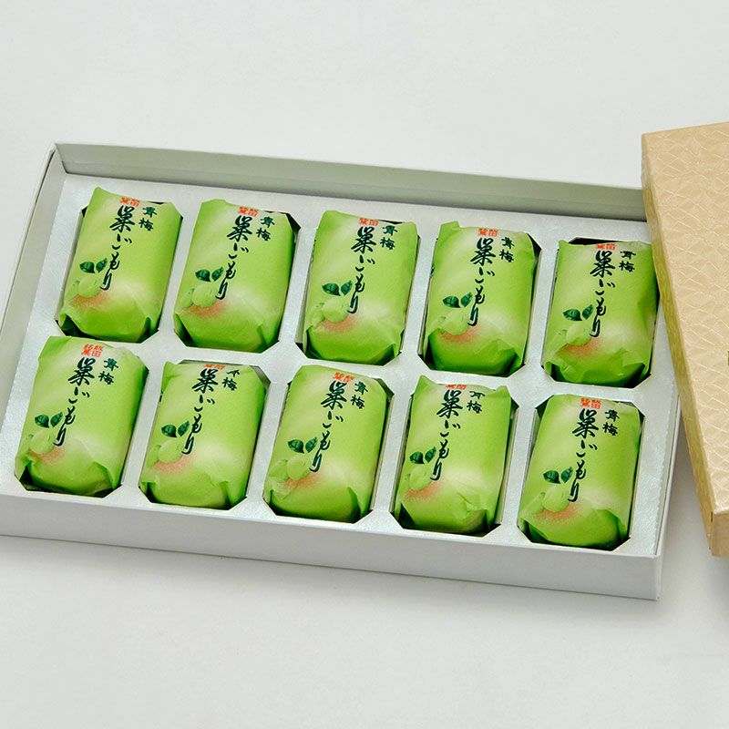 青梅巣ごもりは、黄味餡に甘酸っぱい青梅の果肉と果汁を加えて、ホワイトチョコで包みこんだ、夏にふさわしい、さわやかな味の高級生菓子です。 4月下旬から9月上旬までの期間限定です。 「青梅巣ごもり」には、π(パイ)ウォーターを使用しています。